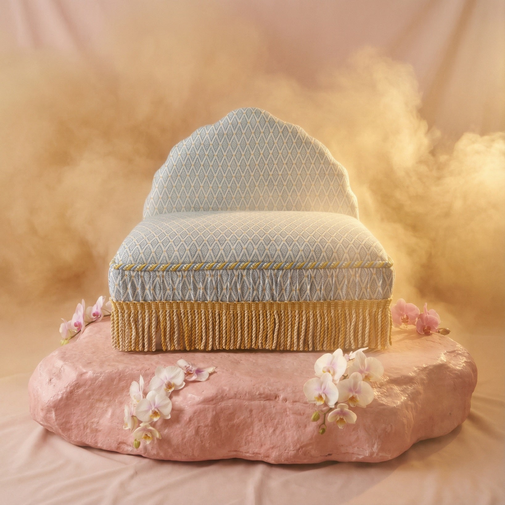 Meet Maryam. Featuring a shell silhouette headboard, this custom made dog or cat bed will add a mythical look to your beach home.