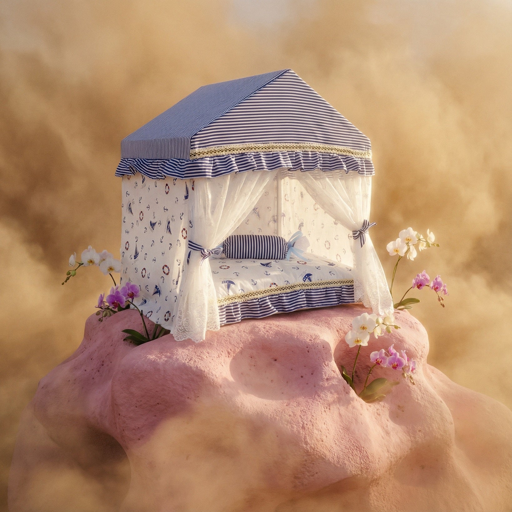 Designed in a tent style, this pet bed transforms into a palace fit for your furry royalty. With delicate lace curtains, adorable ruffles, and a plush, included pillow, it radiates elegance while providing ultimate comfort. Every detail, from the sea motifs to the soft and fresh fabrics, bursts with the vibrant colors and traditional patterns of Portuguese culture.