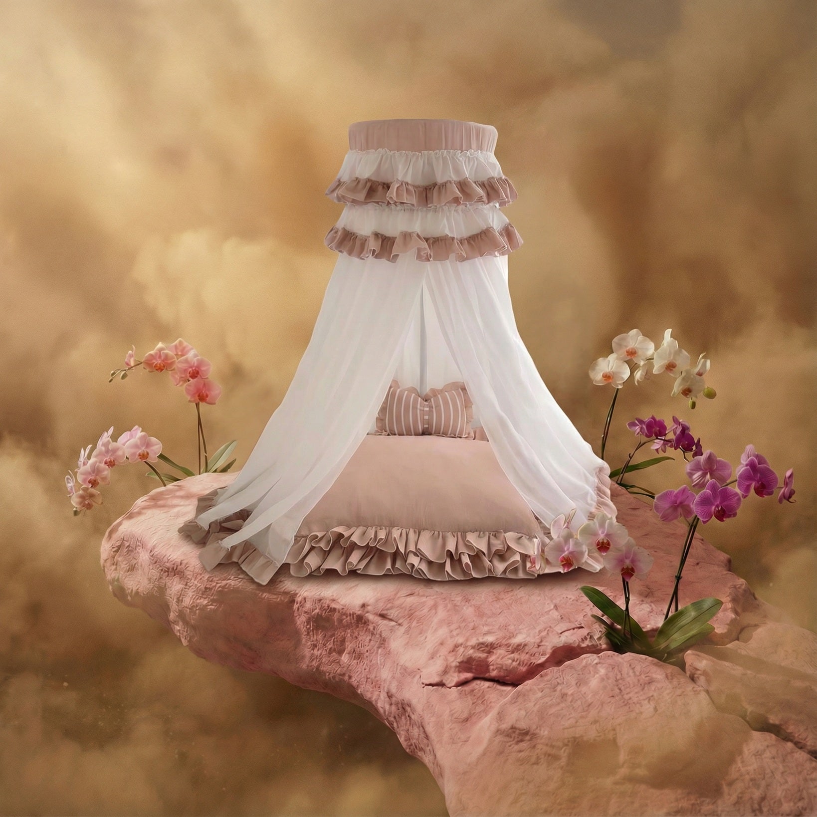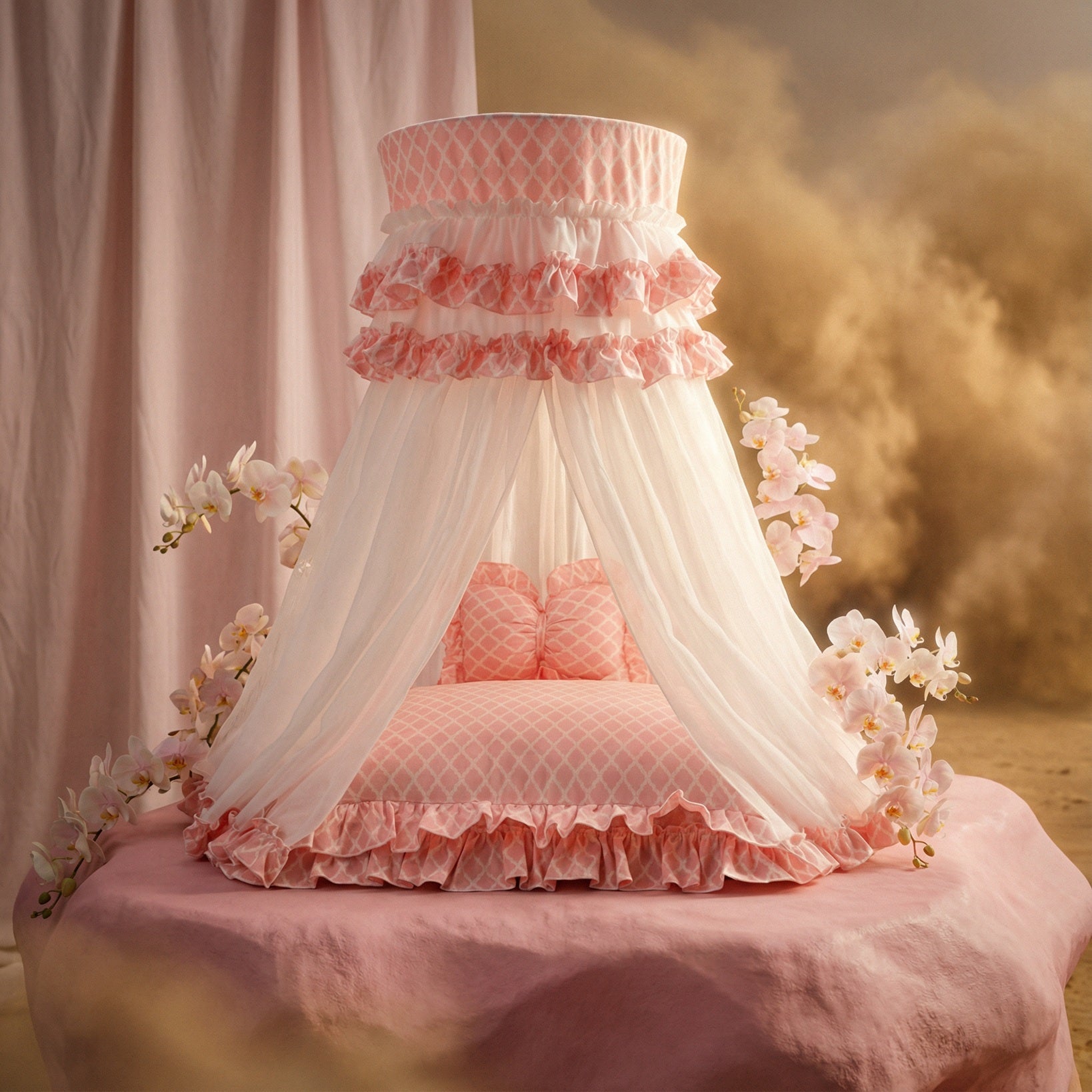 Exquisite luxury pet bed for dogs and cats featuring orthopedic comfort, handmade in Europe with baroque designer details, glamorous high-end customizable pet furniture by Aposentis. €350.00