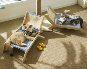 A place like no other, for pets and pet parents like no other. Inspired by the breezy elegance of Hamptons style and infused with the rich tradition of Portuguese design, this stylish pet sun lounger is a statement of both comfort and sophistication. Crafted in classic white and blue stripes, it captures the essence of coastal living while providing a luxurious retreat for your beloved cat or dog.